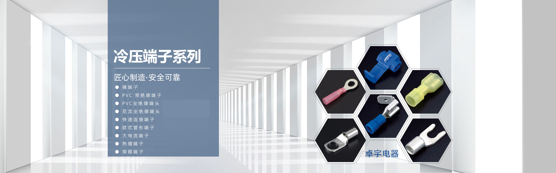 溫州卓宇電器有限公司是專業生產、銷售各種符合標準的冷壓端頭、接線端子、電氣輔件、及專用工具等。